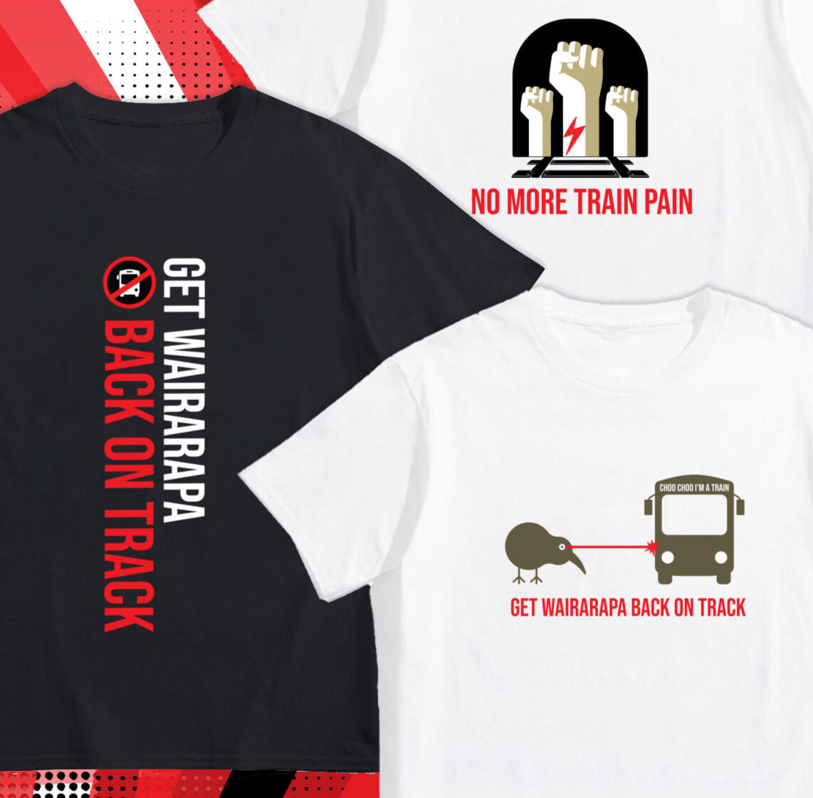 The Get Wairarapa Back on Track merch is a bold, visible way to back the Train Pain campaign and show you stand with Wairarapa commuters.Whether it’s a T-shirt, hat or tote, every item helps raise awareness and spark conversations. It's totally your choice.All designs were created pro bono by our incredibly talented local international graphic and fashion designer, Cheryl - because like you, she believes we deserve better. Order online, wear it proud, and help keep the pressure on.